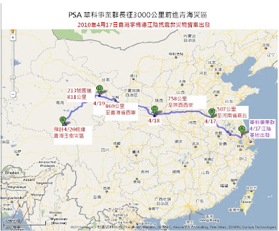 PSA抗震救災救援物資車4/17上午9時自江陰出發經五省長征3000公里